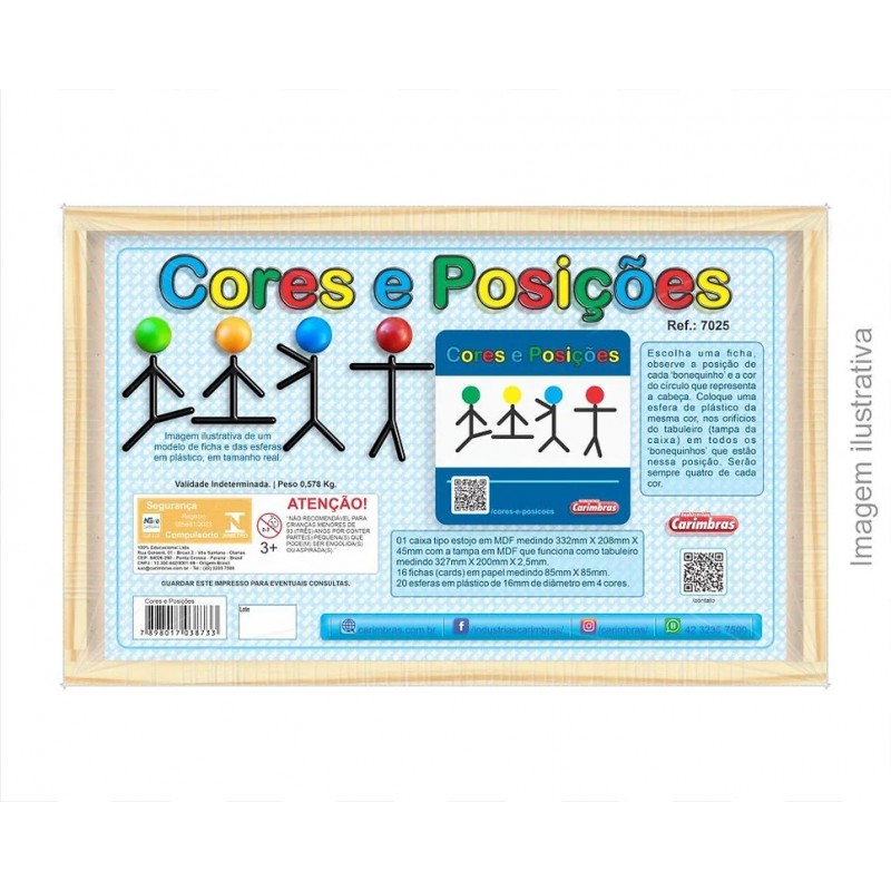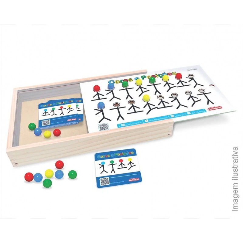 01 caixa tipo estojo em MDF medindo 332mm X 208mm X 45mm com a tampa em MDF que funciona como tabuleiro medindo 327mm X 200mm X 2,5mm. 16 fichas (cards) em papel medindo 85mm X 85mm. 20 esferas em plástico de 16mm de diâmetro em 4 cores.